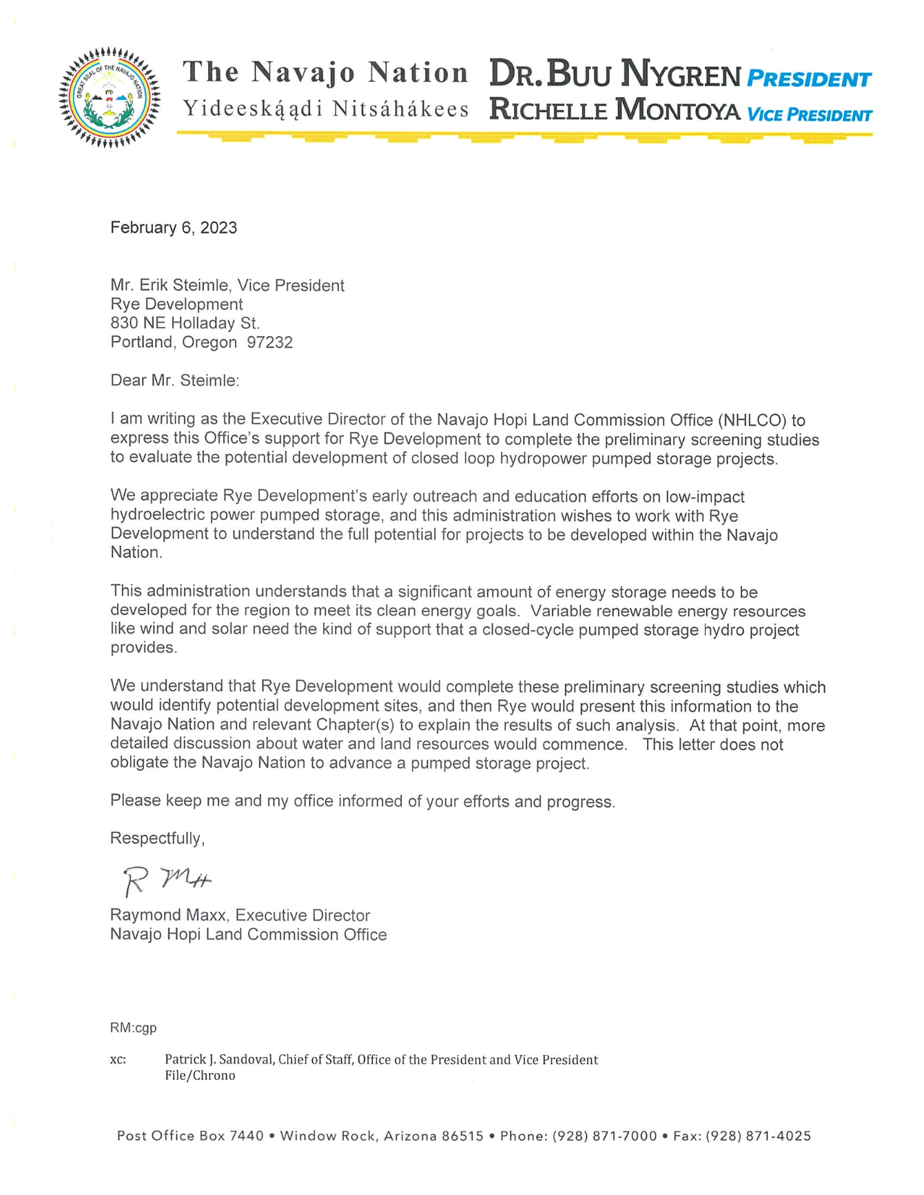 Navajo Nation invited Rye Development to study pumped storage sites in the western region of the Navajo Nation.